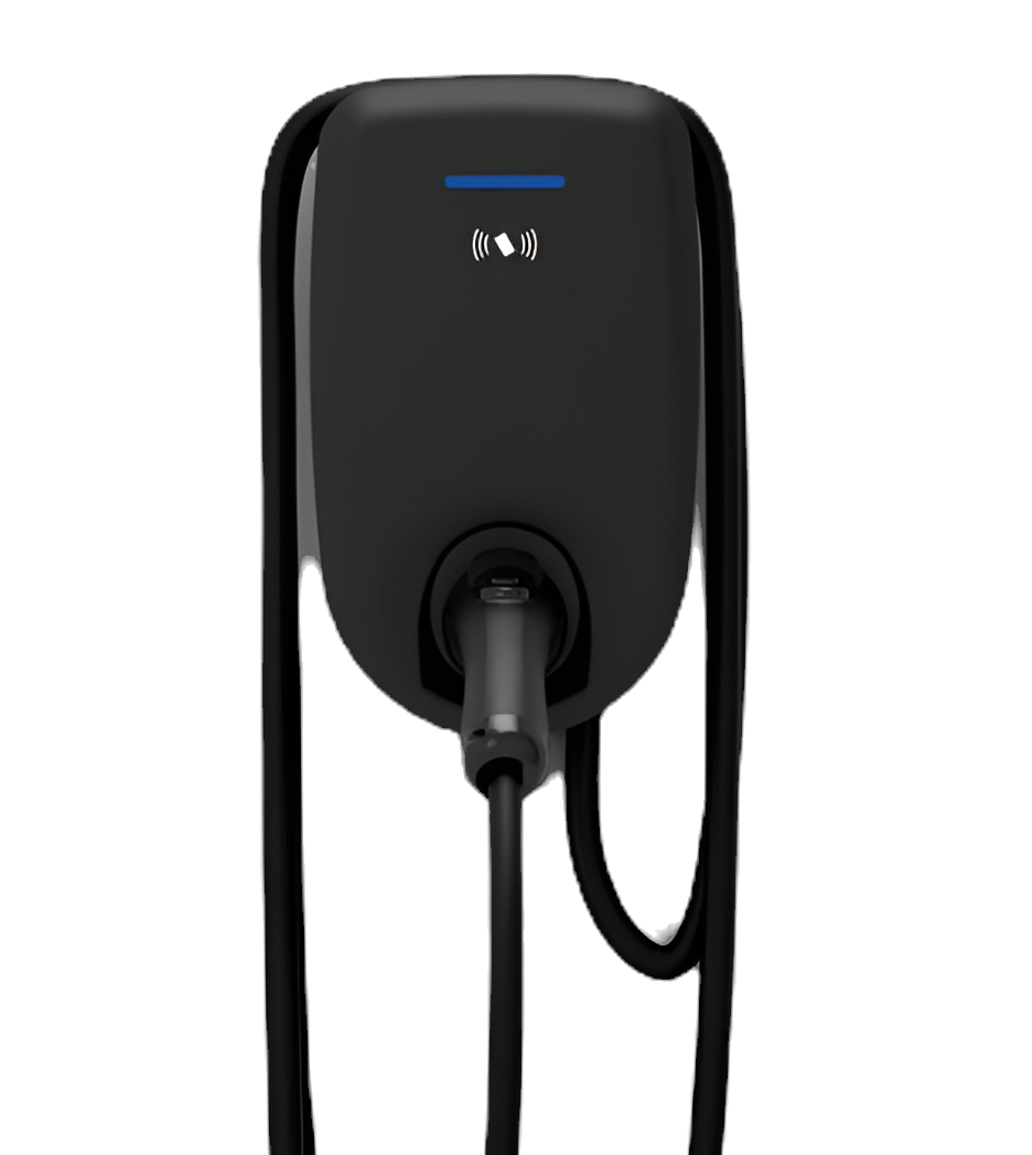 The 7 kW AC EV charger is a compact, single-phase charger (32 A, 220–240 V AC) designed for residential or light commercial use. It features a Type 2 connector with a 5 m cable and supports Mode 3 charging (IEC 61851-1). Built for durability, it operates in harsh environments (IP55-rated) and includes safety features like 6 mA DC ground fault detection and a fire-resistant housing.